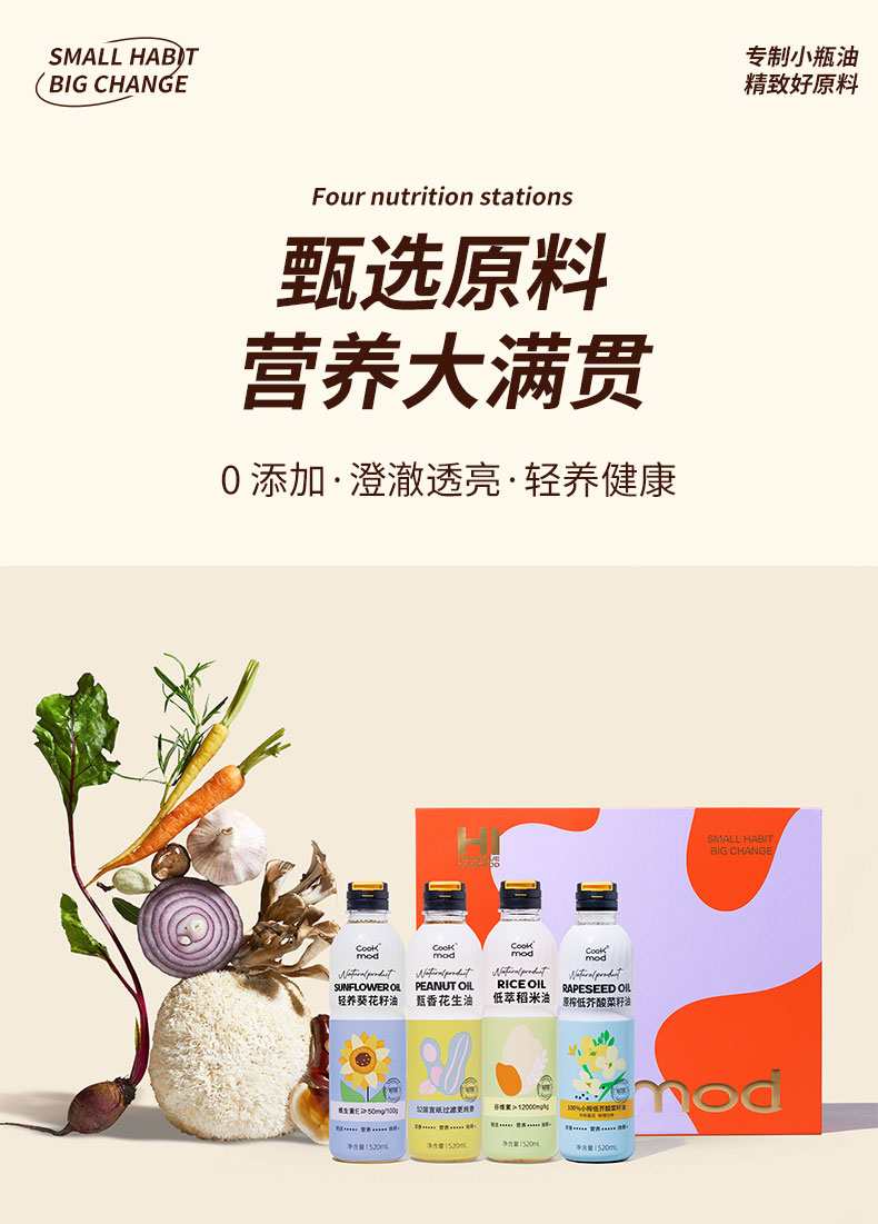 cookmod年轻厨房油礼盒520ml*4(稻米/花生/菜籽/葵花籽)