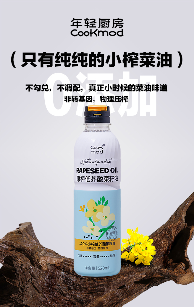 cookmod年轻厨房原榨低芥酸菜籽油520ml*3瓶装