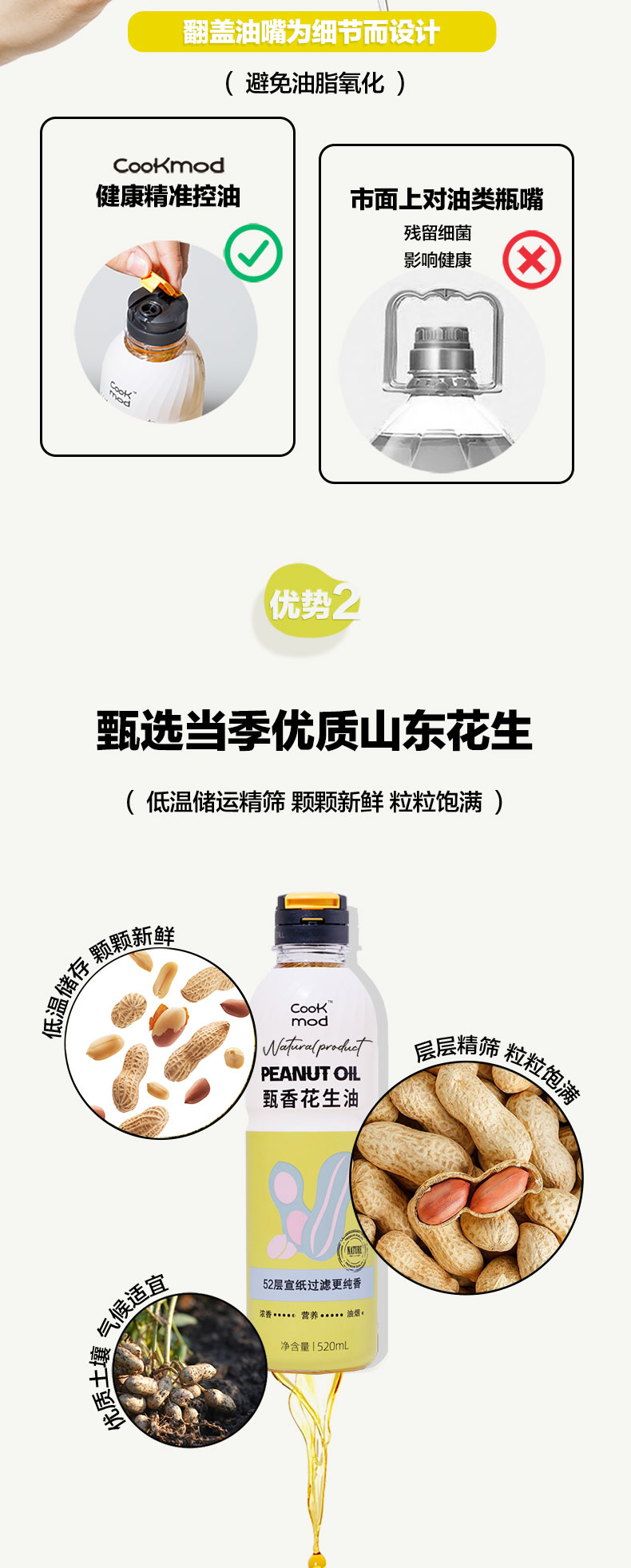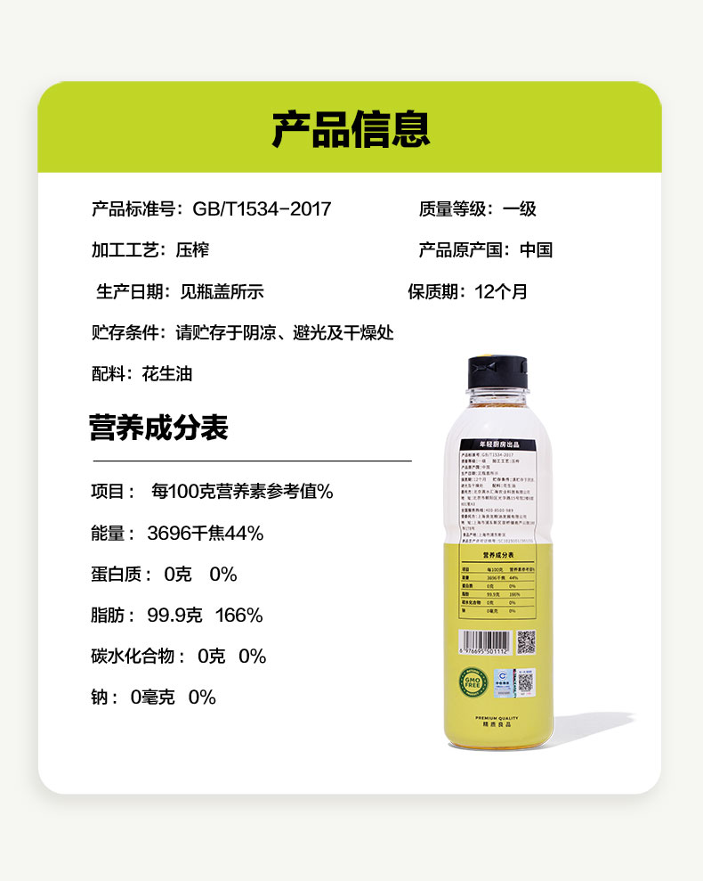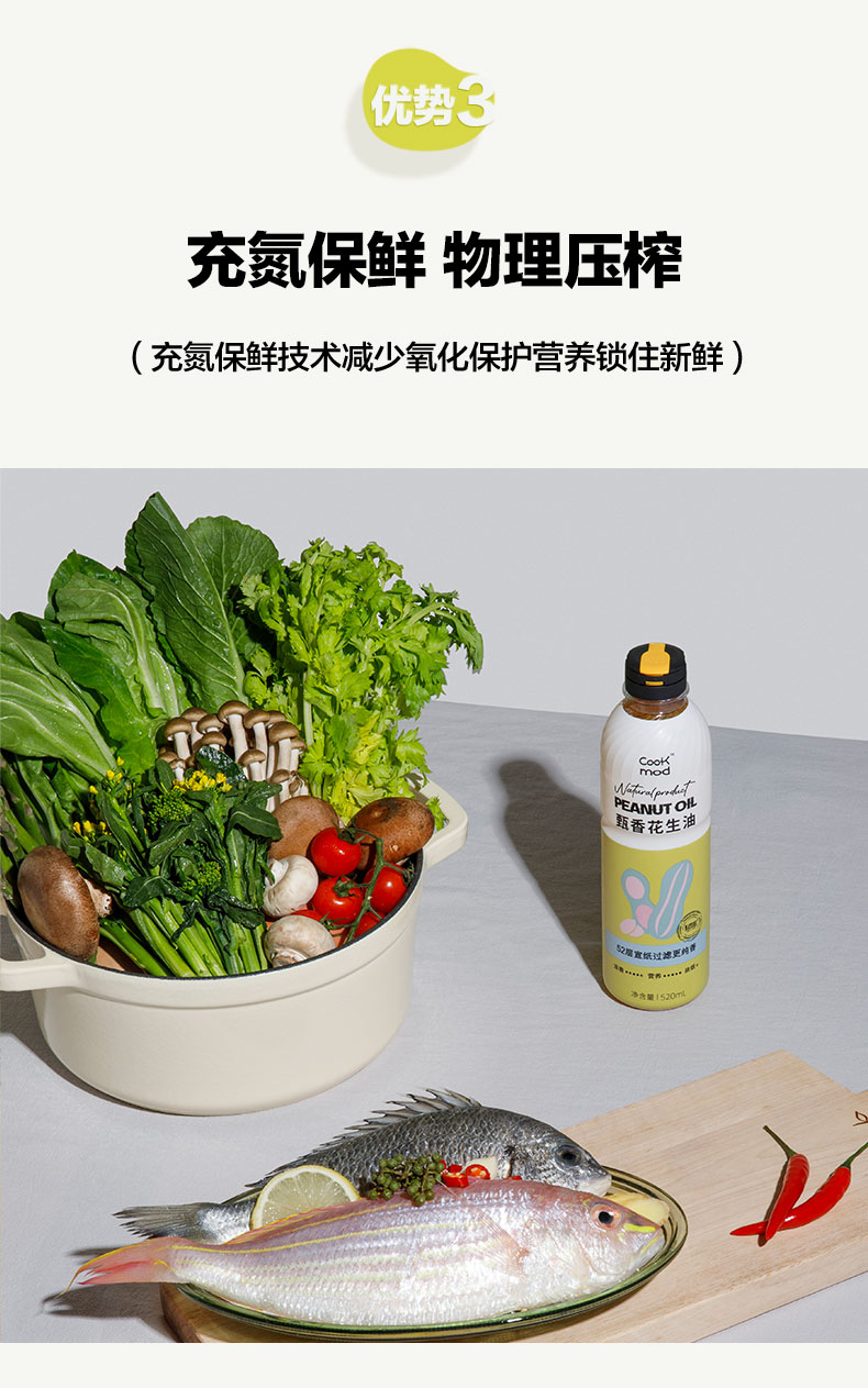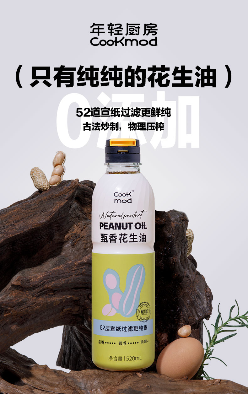 cookmod年轻厨房甄香花生油520ml*3瓶装