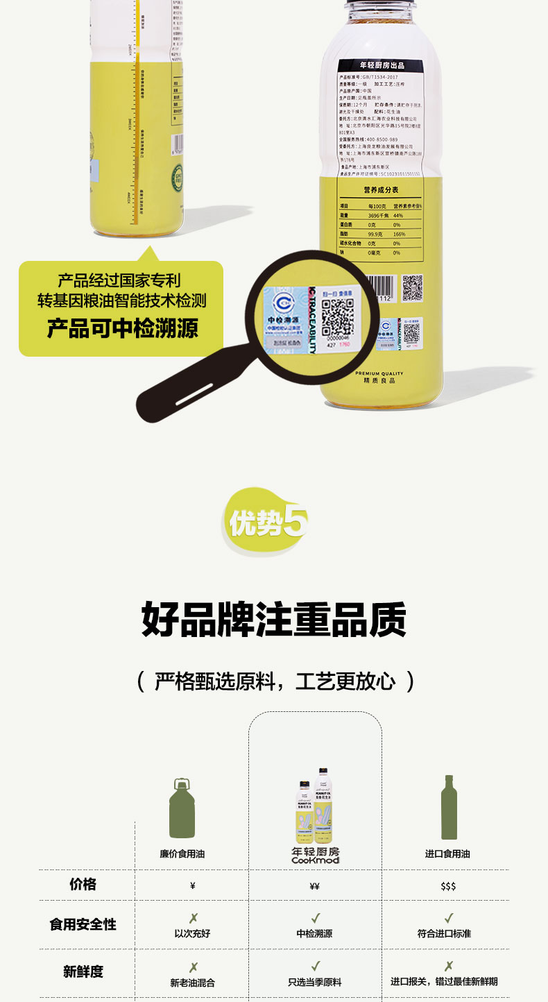 cookmod年轻厨房甄香花生油900ml*2瓶装