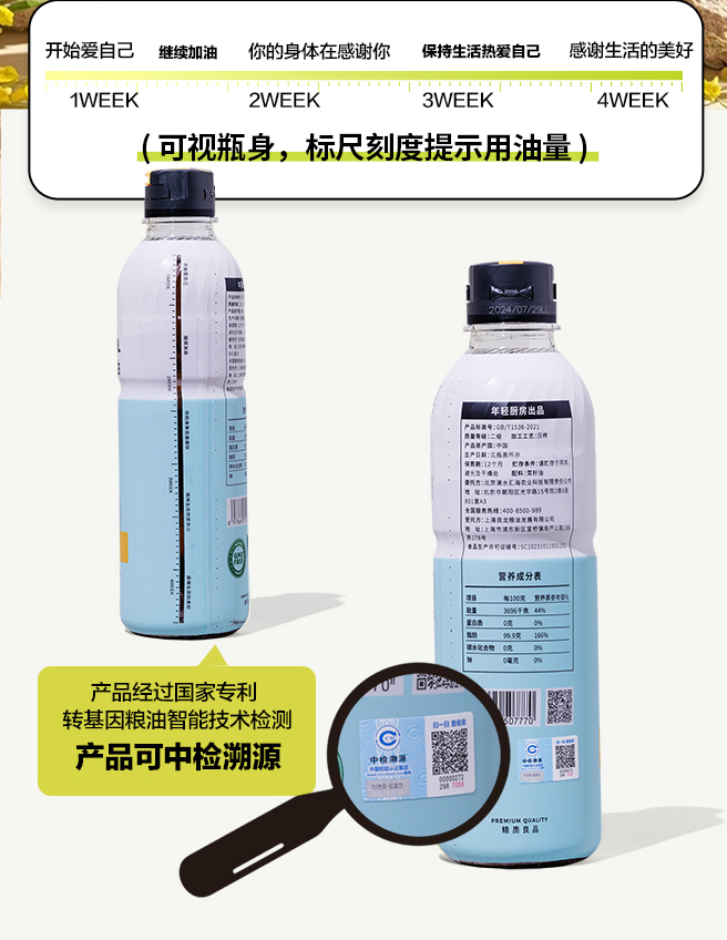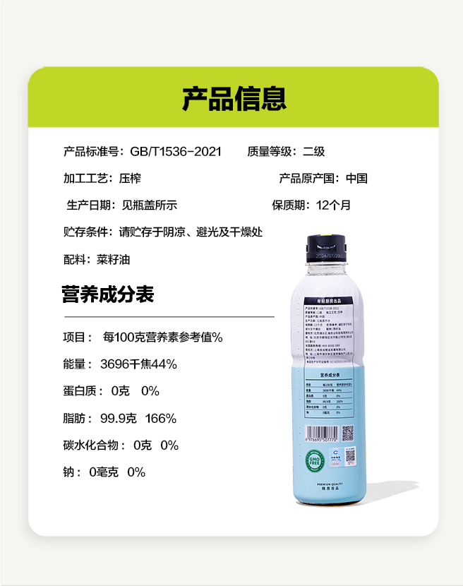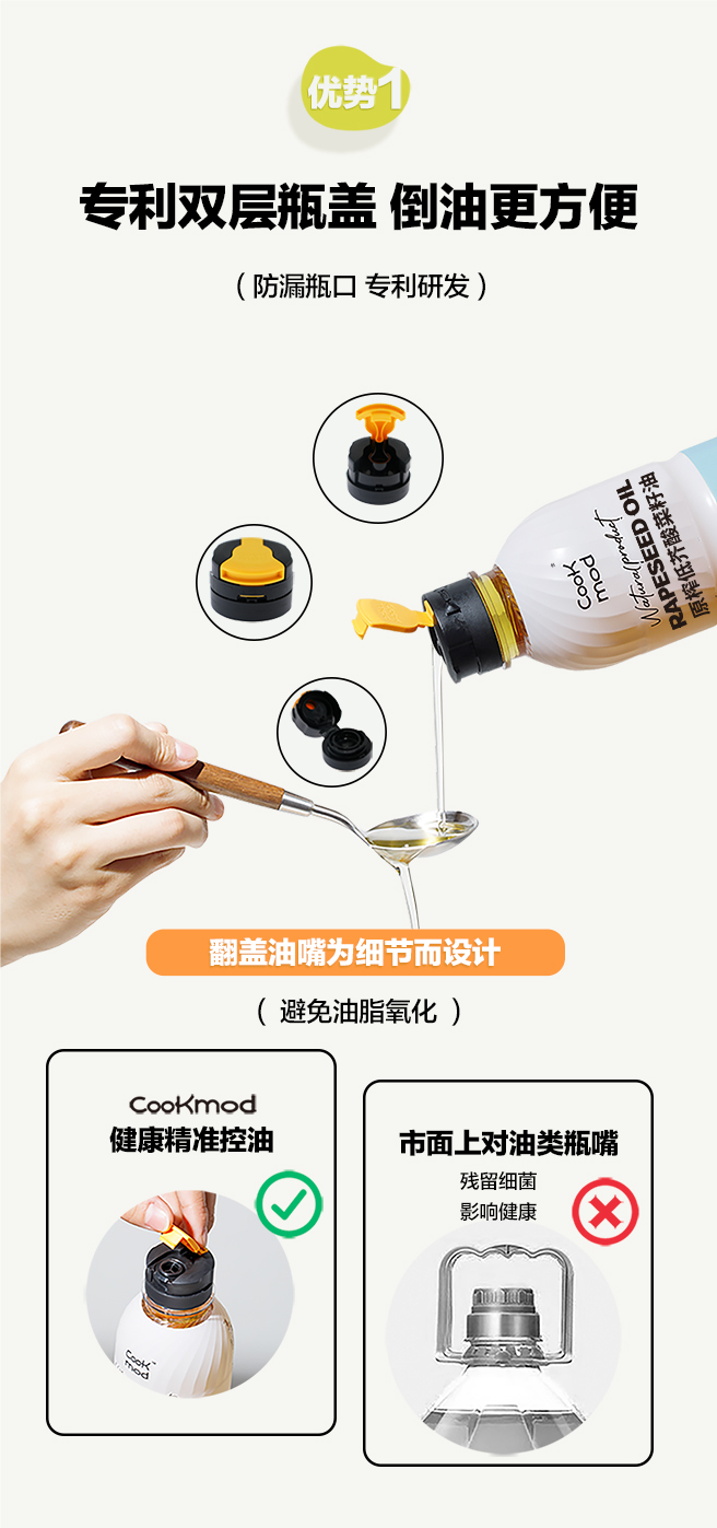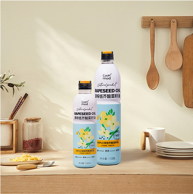 cookmod年轻厨房原榨低芥酸菜籽油520ml*2瓶装