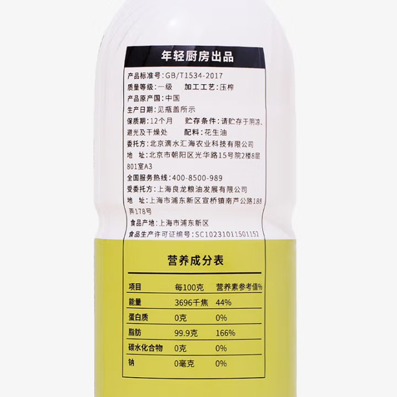 cookmod年轻厨房甄香花生油520ml*2瓶装